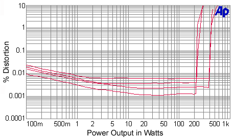 noise versus power varies for 1kHz and SMPTE IM test signals and amplifier output load. As