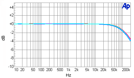 - Gain, unbalanced input/balanced input: 28.6x, 29.1dB/28.6x,