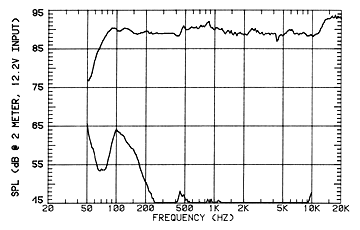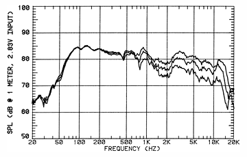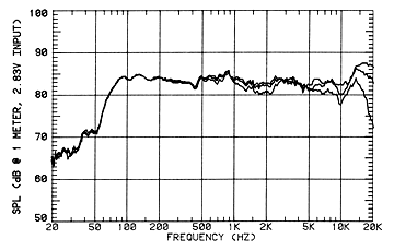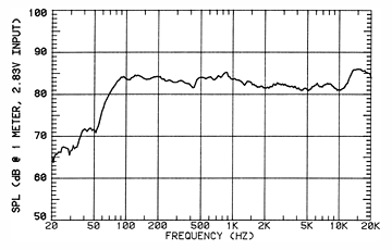 Microphone measuring position: tweeter, no grille Sensitivity: 83.0dB (averaged 300Hz-3kHz, 2.83V/1m) Frequency response, 20Hz - 20kHz