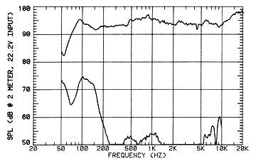 (measured @ 2m, plotted @ 1m) Frequency response, 20Hz - 20kHz