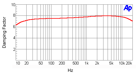 to an 8-ohm load is plotted in Chart 4, and is between 7 and 8 over most of the audio