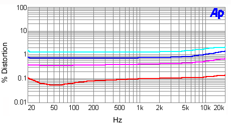 the relatively low amount of distortion increase at the higher frequencies, which is a