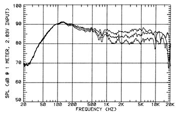 (measured @ 2m, plotted @ 1m) Frequency response, 20Hz - 20kHz