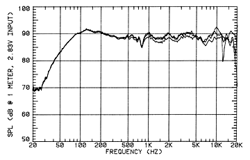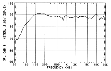 Microphone measuring position: tweeter axis Grille: on Sensitivity: 88.5dB (averaged 300Hz-3kHz, 2.83V/1m) Frequency response, 20Hz - 20kHz