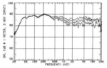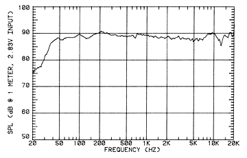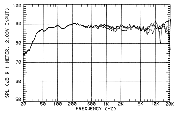 Microphone measuring position: tweeter axis Grille: on Sensitivity: 89.0dB (averaged 300Hz-3kHz, 2.83V/1m) Frequency response, 20Hz - 20kHz