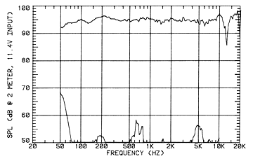 (measured @ 2m, plotted @ 1m) Frequency response, 20Hz - 20kHz