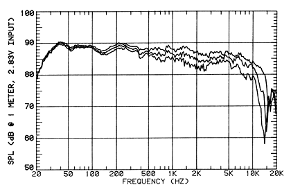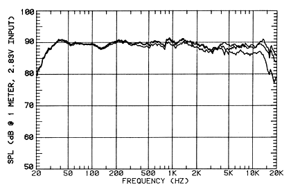 (measured @ 2m, plotted @ 1m) Frequency response, 20Hz - 20kHz
