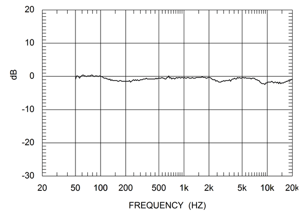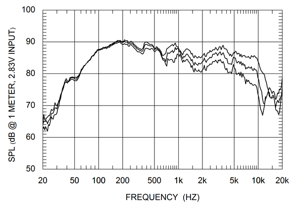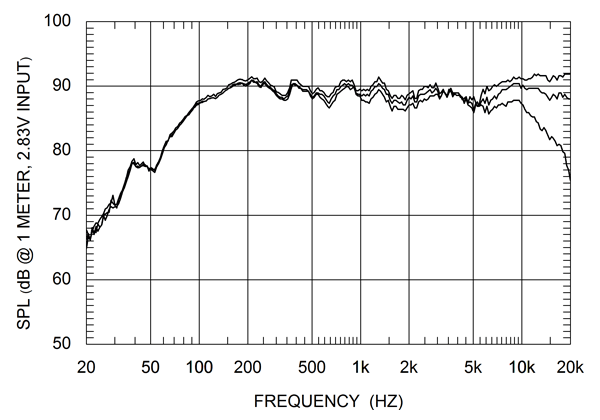 Microphone measuring position: tweeter axis Grille: off Sensitivity: 88.5dB (averaged 300Hz-3kHz, 2.83V/1m) Frequency response, 20Hz - 20kHz