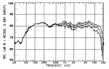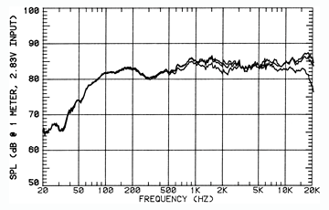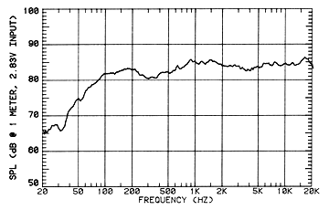 Microphone measuring position: tweeter axis (manufacturer specified) Sensitivity: 84.0dB (averaged 300Hz-3kHz, 2.83V/1m) Frequency response, 20Hz - 20kHz
