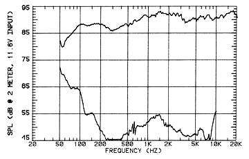 (measured @ 2m, plotted @ 1m) Frequency response, 20Hz - 20kHz