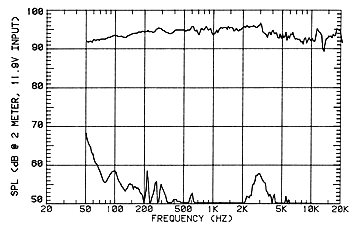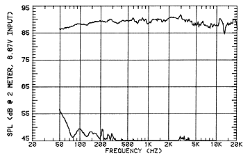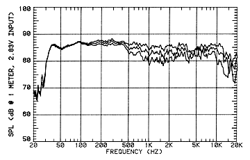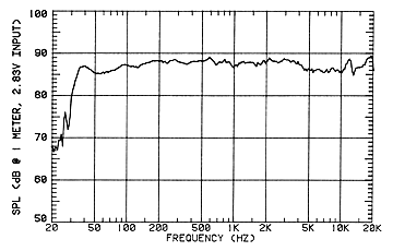 Microphone measuring position: 30" up from speaker bottom (manufacturer specified) Grille: on Sensitivity: 88.0dB (averaged 300Hz-3kHz, 2.83V/1m) Frequency response, 20Hz - 20kHz